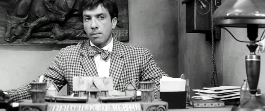 СЮ: Очень сложно. Но и об этом я теперь уже забыл, потому что в шестистах (примерно) металлических коробках, в которых лежит сейчас наша картина – громадный материал, — уже либо лежит, либо не лежит Бендер. Те сцены, которые осталось снять, могут только чуть-чуть что-то прибавить или убавить. А он там уже лежит где-то, неведомый для меня. Но сейчас мне важно договориться с ним самим, с Бендером. И я забыл о том, что он – литературный персонаж, о том, что он написан, всем известен… Мне как-то интересны его слова, интересны его мысли, они у меня вызывают изумления, хотя я знаю, естественно, наизусть весь роман. Меня интересует вот это личное, свое.