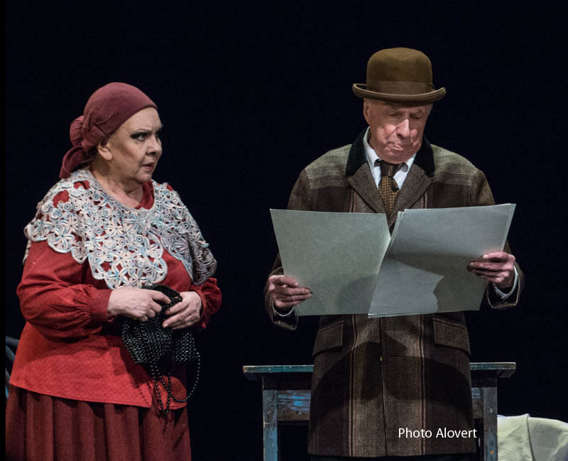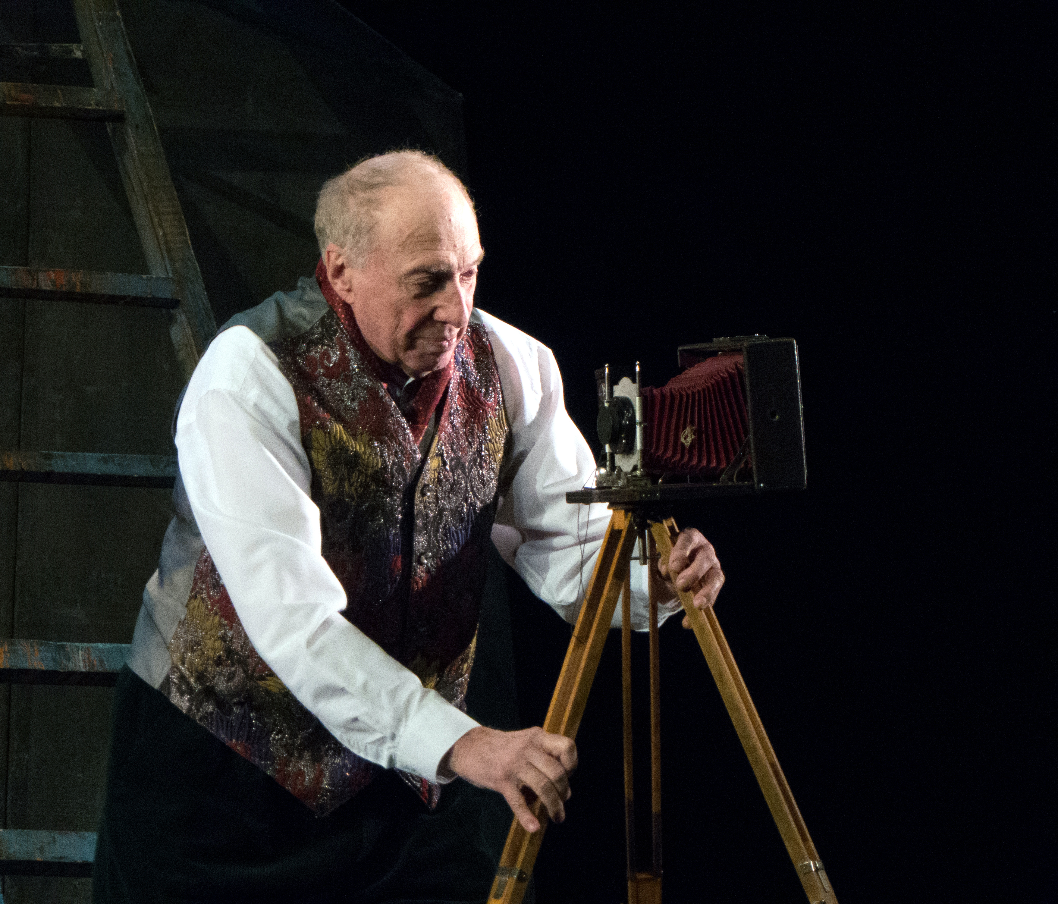 В пьесе всего два действующих лица – Художник и Ангел. В гамме спектакля куда больше красок. Палитру держит в руках режиссер и исполнитель главной роли Сергей Юрский. Хотя, исполнитель по отношению к Юрскому слово неверное. Он давно уже творец, о какой бы роли не шла речь. Не Шагал на сцене, но Актер, ведущий диалог «как художник с художником». Впрочем, Сергей Юрский – актер многоликий, и в спектакле «не одну играет роль». Он и Шагал от мала до велика, и старый фотограф Шмерц, под началом которого художник учился дорисовывать и ретушировать фотопортреты, и парижский поэт Сандрар, и суетливый сват – бадхен, и набожный дядя Исроэл, и даже Луначарский, назвавший Шагала «Гофманом околовитебских трущоб». Многоликость формальна – ни притворства, но и не перевоплощения. На сцене каждое мгновение – Юрский, обращающийся от имени своих персонажей не к залу, к себе. На сцене – творческий поиск в режиме реального времени. Отдельных зрителей подобный прием завораживает.