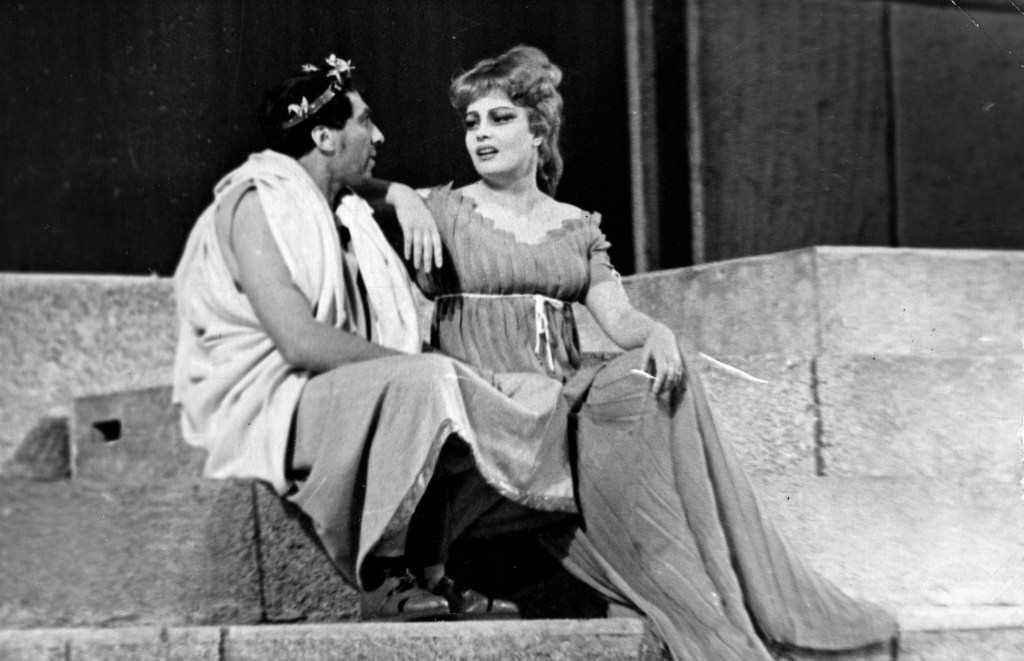 «Цезарь и Клеопатра» — режиссер Е. Завадский. Театр имени Моссовета, Москва Выдающийся актерский дуэт Ростислава Плятта и Маргариты Тереховой — и еще один спектакль, в котором римские мотивы позволяют завуалированно разговаривать о современности.