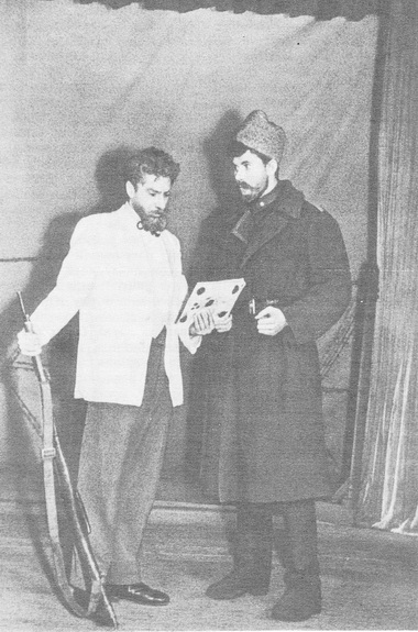 Мы играли вдвоем массовую сцену, и длилось это около сорока минут. Худсовет смотрел. И худсовет хохотал. Гога довольно всхрапывал и победно оглядывал сидящих рядом…