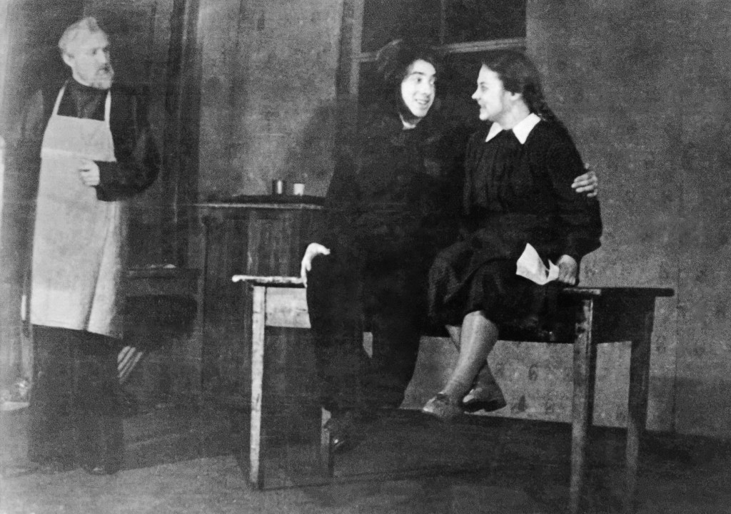 А секретаршей отца, которая ставила печать, была, кстати заметим, молодая театроведка… Дина Шварц, будущий “министр иностранных дел” товстоноговского государства.