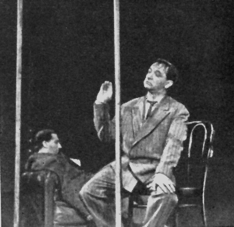 .… Ленинградская постановка «Карьеры Артуро Уи» опиралась на варшавский оригинал, но не была его точной копией, прежде всего потому, что Аксер в обоих случаях ориентировался на актеров. Но здесь возникала значительная трудность, ибо речь шла об актерах не только другой индивидуальности, но и другой школы, других традиций, порой другого театрального мировоззрения. 89 Многие требования Аксера, касающиеся как брехтовского театра в целом, так и стиля спектакля, были просто не поняты актерами. Аксер, например, говорил, что «Карьеру» надо играть «кабаретно», но, как рассказывает М. Рехельс, никто не понял даже этого слова. (Сам же Рехельс пытается — в своих записках 1964 года — объяснить понятие «кабаре», отталкиваясь от знакомого «капустника»)2.