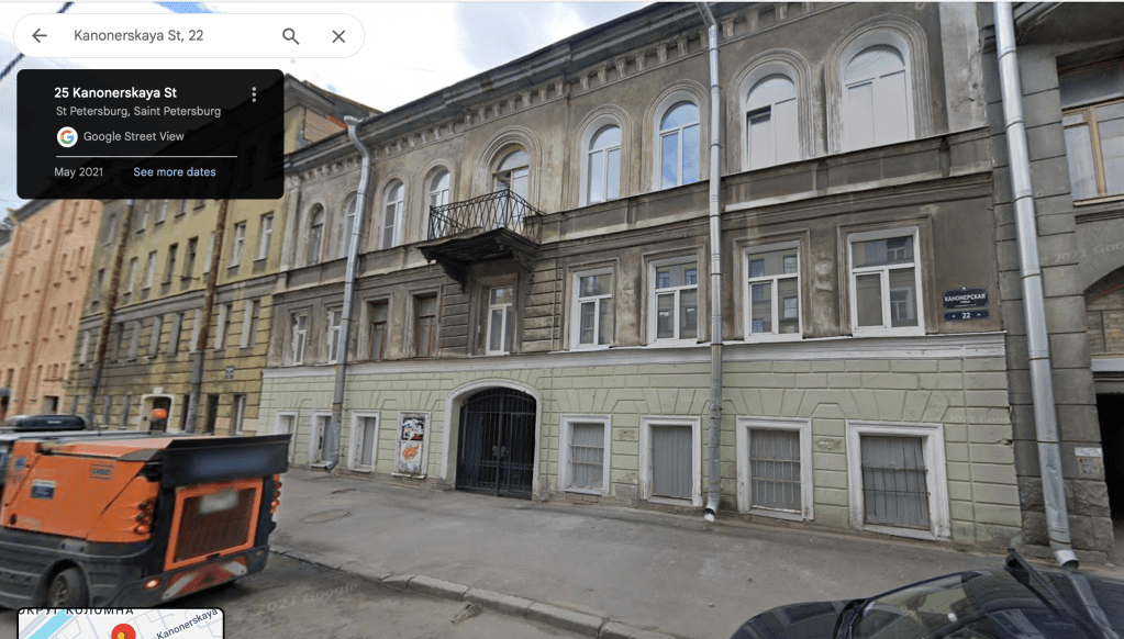 Ещё одно обстоятельство, которое могло повлиять на выбор адреса — буквально за углом на улице Союза Печатников/б.Коломенской/б. Торговой улице в доме № 16 находилась Коломенская женская гимназия https://www.citywalls.ru/house10711.html. Возможно, именно в ней училась в младших классах Евгения (иначе она вряд ли смогла бы в 1917 году поступить в 5 класс Анненшуле (о ней ниже). Учитывая, что из четырех детей Моисея Яковлевича трое получили хорошее образование, наличие гимназии по соседству могло быть таким же приоритетом, как соседство синагоги.