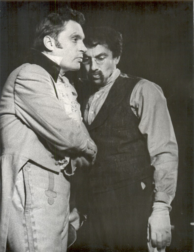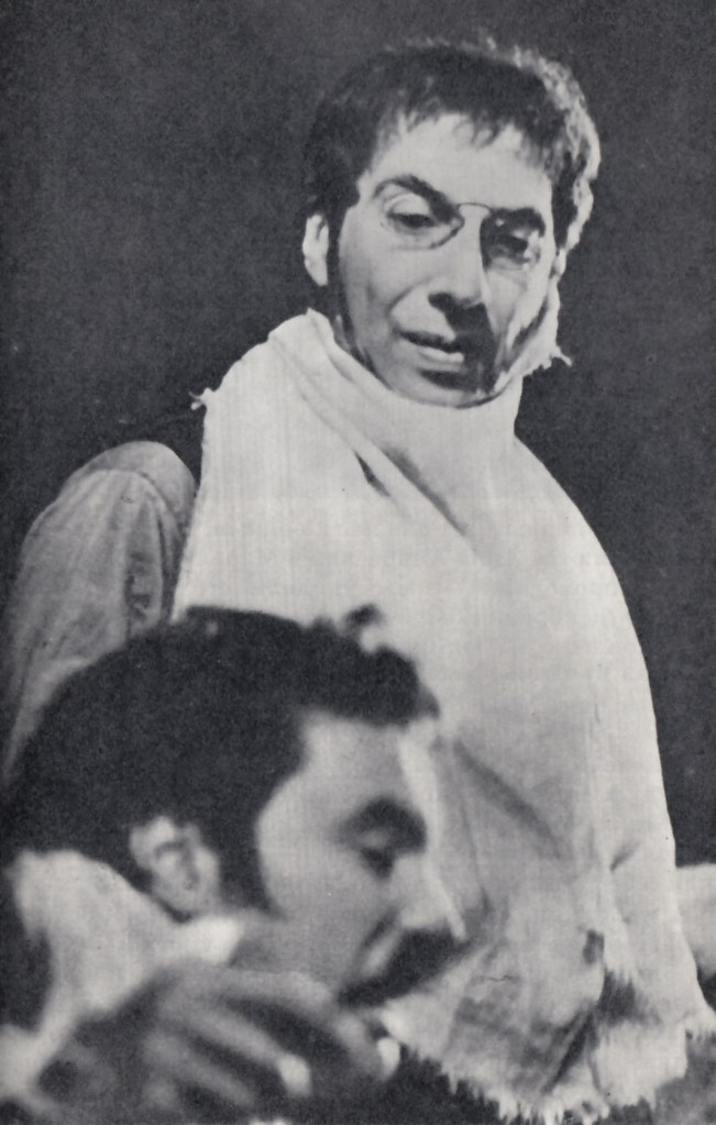 230 Но это был все же «театр для себя». Игра Юрского почти не отзывалась в других элементах спектакля и, по существу, выпадала из него, перекашивала его построение. Прямолинейно и жестко он шел к своей цели, редко оглядываясь на «ручейки и пригорки» пьесы, ее изумительную поэзию.