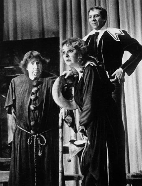 В этом спектакле Сергей Юрский успешно дебютировал на сцене Театра имени Моссовета не только как актер, но и как режиссер. И, может быть, одно из его наиболее ярких достижений в этом качестве — те добавочные вариации к предложенной теме, которые звучат по ходу спектакля в интермедиях из произведений Дж. Боккаччо, Г. Гауптмана и Э. Ростана.