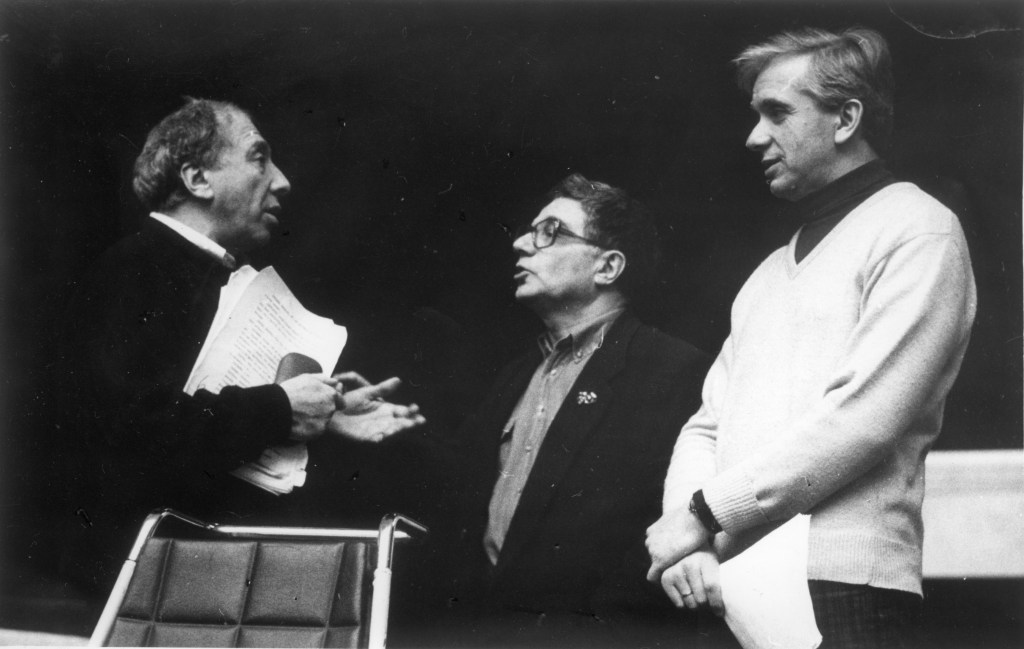 С.Юрский,П.Хомский,Е.Стеблов на репетициях спектакля. Фото любезно предоставлено Театром имени Моссовета.