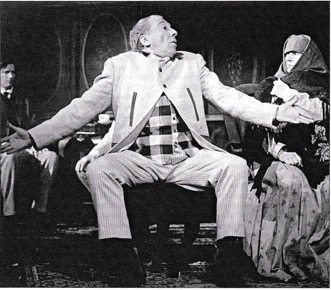 Разумеется, тут вступает в силу известный театральный закон: какими бы нравственными качествами ни обладал персонаж, если его играет выдающийся актер в окружении невыдающихся — то, извините, нравственность отдыхает. Труппа Театра имени Моссовета более-менее удачно подыгрывает Юрскому, но никакой оппозиции составить ему не в силах. Все характеры разработаны плоско и примитивно, одеты все в тускло сиренево-зелено-серой гамме, так что выделить кого-то, запомнить — сложно.