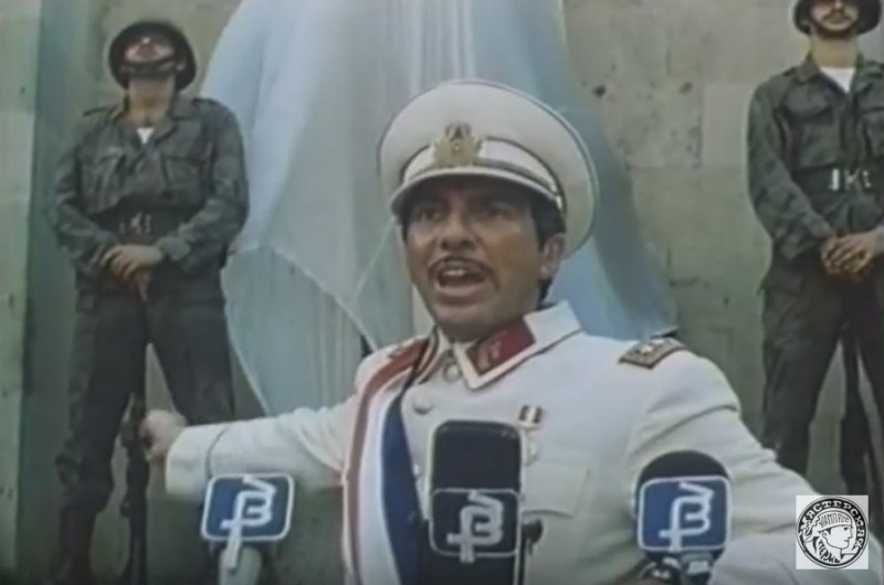 Фильм возвышается до сатиры в тех сценах, где Диктатор—в центре: кряхтит от удовольствия под руками массажистки (с этого «ритуального» действа начинается фильм), произносит речи, беседует с министрами и «покровителями», ведет переговоры с независимым скульптором Франсиско де Молина (Л. Пилпани), пытаясь его купить. Выразительный штрих в портрете, довершающий развенчание,— сцена на бойне. Диктатор, оказывается, профессиональный мясник—емкая метафора!