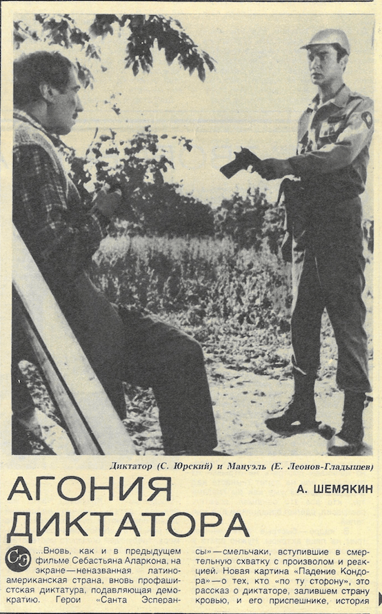 Сергей Юрский:»Впустили меня обратно в кино. Снялся в двух фильмах. Один – «Падение кондора» – прошел довольно незаметно.» Отсюда