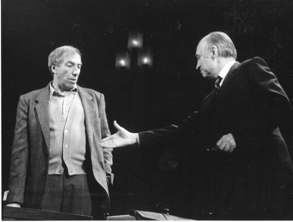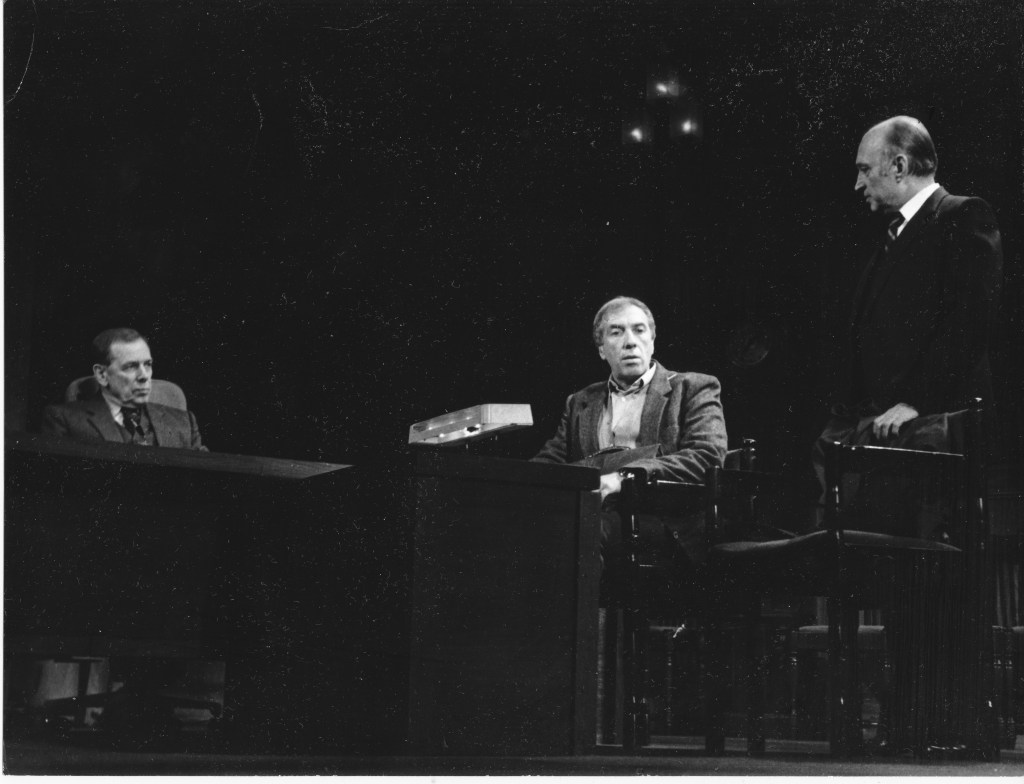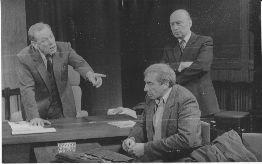 Не хочу утверждать, что спектакль так вырос только благодаря Юрскому, — видимо, вся закладка была верной, но какую-то точку он в нем поставил, что не могло не повлиять на партнеров: и уже упомянутый Г. Жженов (Казмин) и Н. Прокопович (Ермаков) сейчас предельно свободны в своих ролях; человеческое противостояние их героев, поначалу как бы составлявших тандем, нарастает и достигает апогея в финале спектакля, что делает особенно точным его социальный итог. И как они умны, все трое, как много понимают с полуслова, догадываются, что должно случиться, задолго до того, как это произойдет!