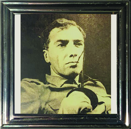 Вот посмотрите, эта фотография прямо со сцены, я щелкал. Это Франк в пьесе Артура Миллера «Цена». Здесь ему 30 лет. Он со шпагой, стоит на сцене, перед занавесом, спектакль еще не начался. Вот он какой. Вот шпагу Вы видите, от нее полоса такая, тень на лице… У меня очень много таких фотографий, но не будем превращать это в фотографии…