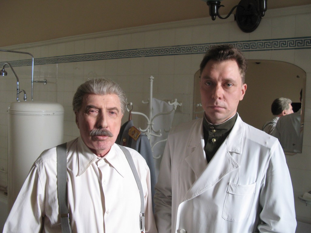 Прошли-пролетели годы. И вот, как сейчас помню, 27 февраля 2011 года меня везут на легендарную сталинскую «Ближнюю дачу». Режиссер-постановщик Ирина Гедрович утвердила меня на крошечную роль в фильме «Товарищ Сталин». На роль личного цирюльника вождя. И вот я переступаю порог исторического дома и, конечно же, вдруг… встречаю его. В мундире и в гриме. По-моему, с трубкой. Он говорит нарочито медленно и с отчетливым грузинским акцентом. Умом я понимаю, что это ОН. Но что-то все-таки отказывается верить. ОН ни на секунду не выходит из образа. Особенно за кадром. Прежде всего, за кадром. Я ловлю себя на мысли, что совершенно непроизвольно начинаю себя контролировать. Свои движения, свою речь. И весьма обалдеваю от этого. (Я-то наивно думал, что уже снял все советские зажимы…) И вот нас вдруг приглашают в «святая святых» – в ванную комнату вождя. На репетицию. Ассистент режиссера по реквизиту вручает мне персональтный реквизит – «опасную бритву» Sheffield, которая на деле оказывается совершенно безопасной, то есть тупой. Потом показывает, где лежит исходящий реквизит – салфетки и прочее, и мы начинаем репетировать. Дело движется крайне медленно: бритва, конечно же, ну, совершенно не бреет, а только царапает, текст, естественно, куда-то западает-выпадает, я страшно волнуюсь, никак не могу приспособиться к такой-сякой-тупой бритве, глупо улыбаюсь и постоянно извиняюсь. Режиссер настоятельно советует просто обозначать движения бритвы, тем более, что их, движения, в кадре ну все равно не видно, и все твердит-твердит зловещее слово «тайминг». И вот мы начинаем снимать, и я понимаю, что ЕГО щека от воздействия этой тупейшей бритвы становится все более красной и красной (я снова извиняюсь, гораздо глупее прежнего, тихо-тихо, уже только персонально перед ним, – и что-то лепечу о том, что – с пушкинской точки зрения – движения моего цирюльника должны быть четкие и плавные, то есть профессиональные; он соглашается и ободряюще советует делать и дальше то, что я делаю)… А паузы между словами становятся все более длинными, ну, а я соответственно – все более и более нервным. После очередного неудачного дубля режиссеру начинает вторить оператор-постановщик Сергей Вальцов. И опять горным эхом дребезжит в ушах это жуткое слово «тайминг». И только я успеваю подумать, что попал в очередную «запендю», как ОН с неизменными ему юмором, чувством, толком и расстановкой говорит вдруг с грузинским акцентом, что эта маленькая сцена архиважна и для его персонажа, и для всего сюжета, и что пресловутый «тайминг» он «выдаст» в других сценах, а эта сцена пусть идет так, как идет. И я, наконец, облегченно так выдохнул, еще раз извинился за тупизну – свою и бритвы, – ну, и конечно, красную-прекрасную щеку. В общем, я довольно быстро собрал себя по частям и сыграл. Малюсенького цирюльника при огромном вожде.