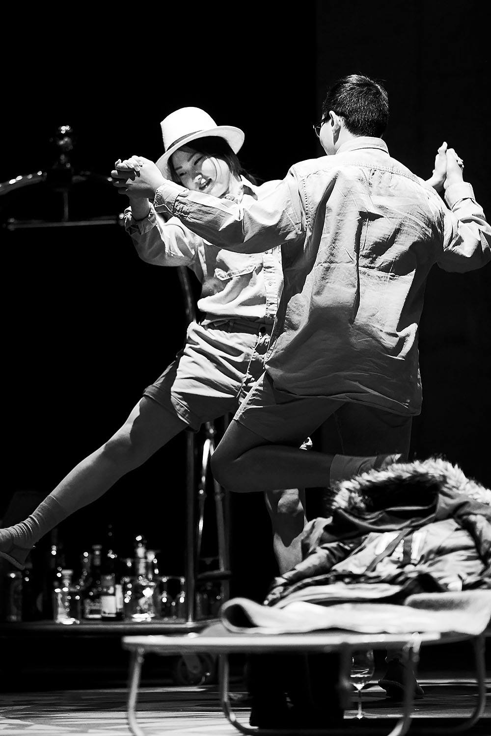 — Абсурд – высшая стадия иронии. В свое время я ставил спектакли, которые можно отнести к попытке воссоздать мир абсурда, — это «Стулья», «Король умирает», «Провокация», «По поводу лысой певицы». Пожалуй, именно в «Лысой певице» наиболее четко отражается предвестие катастрофы, и поэтому она дальше уходит от иронии, чем другие постановки. В спектакле «Reception» — моя попытка передать время, в которое мы живем, и которое, на мой взгляд, стало иным.