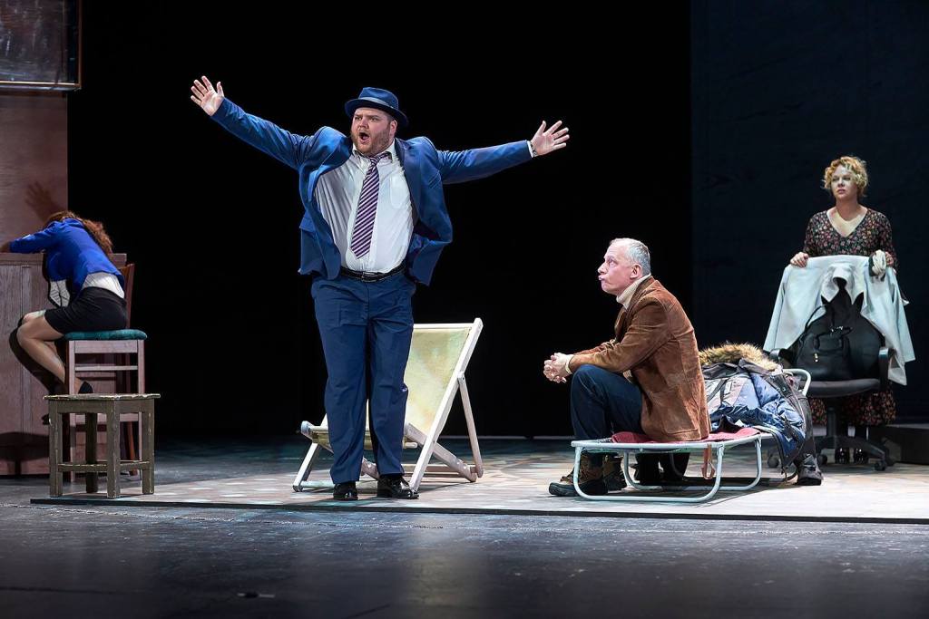 Юрский в главной роли — главное достижение спектакля. Он фактически играет себя — пожилого, мудрого, ироничного, знающего то, что по молодости, неопытности или глупости не ведают другие. Его персонажу по имени Роман Плоткин известно, что в одну и ту же реку дважды войти невозможно. Экс-возлюбленная (Елена Валюшкина) останется для него в прошлом, несмотря на то что в настоящем она готова возобновить отношения. Не секрет для героя, зачем прибыл в город его давний приятель (Владислав Боковин), хотя сам он о цели своего визита не догадывается. Без видимых усилий герой Юрского представляет, как поведет себя уволенный заместитель хозяйки отеля (Михаил Филиппов), намеревающийся прибрать к рукам процветающее хозяйство. Все события, реплики, размышления Плоткин с легкостью укладывает в собственную картину мира, и она его до поры до времени устраивает. Трудности с пониманием начинаются с переходом мерно текущей love story в жанр абсурдистского триллера.